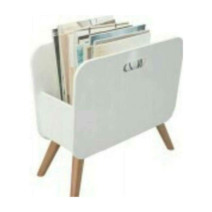 Porta Revista Decorar Sala Casa Revisteiro Pé de Madeira Top off white
