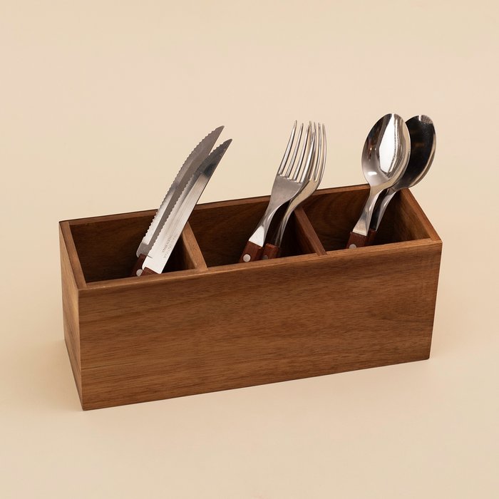 Porta Talheres Organizador de Madeira Acácia com 3 Divisórias - Oikos NATURAL