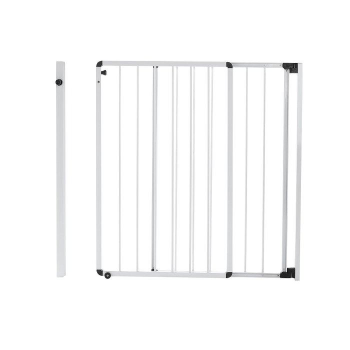 Possui 85cm de altura e largura regulável, variando de 58cm até 200cm de acordo com a medida do portão (4 medidas: 100cm, 125cm, 150cm e 200cm) sem precisar de extensor além disso, o portão de correr reall articula 180º, ou seja, abre tanto para dentro como para fora. E o melhor: o vão é livre diferente de outros produtos no mercado, que possuem uma barra na parte inferior, o portão de correr reall tem um design exclusivo, garantindo maior segurança para sua família pois não há risco de tropeçar.