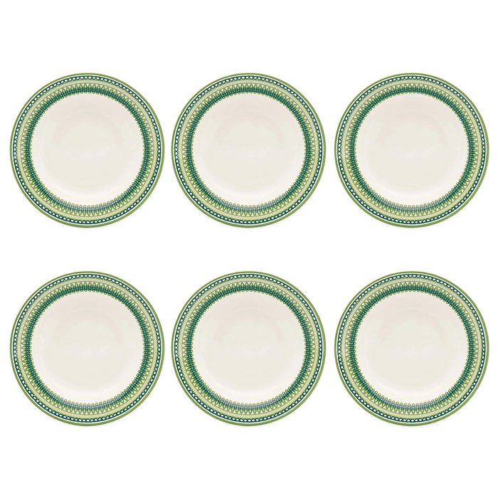 Prato Fundo de Cerâmica Donna Campestre 21,5cm 6un - Biona 135700 Branco e Verde