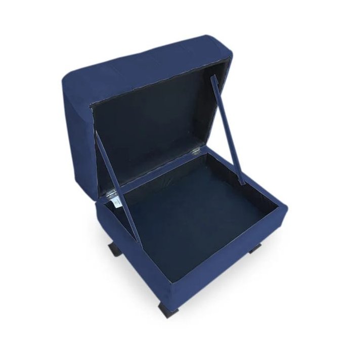 Puff Baú Retrô Luis XV Capitonê Suede Azul Marinho