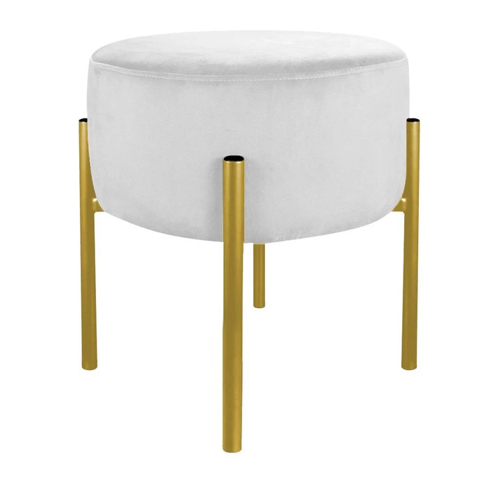 Puff Decorativo Luxo Suede Branco Pés de Ferro Dourada - Belliv Decor