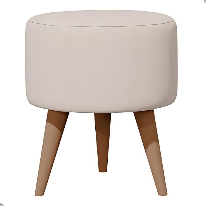 Puff Madri Banqueta Redonda em Linho Pés Eucalipto Pufe Sala:off White