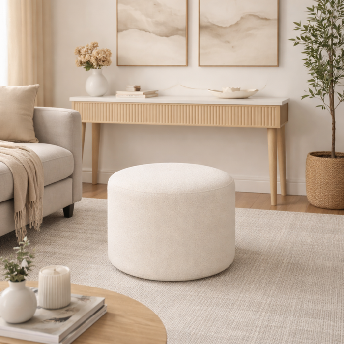 Puff Puffer Redondo Decorativo Descanso Sala Quarto Charme BOUCLE OFF