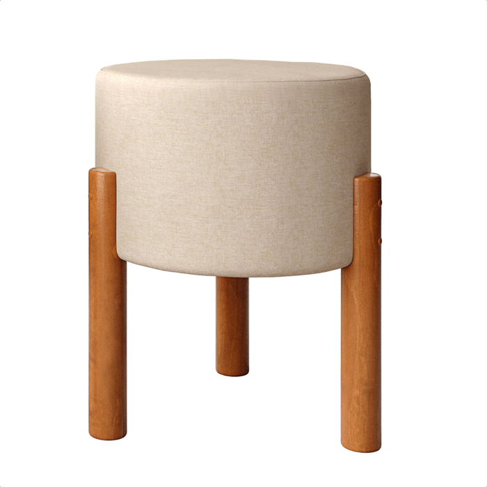 Puff Thor em Linho Pés em Eucalipto Redondo Pufe Sala:bege