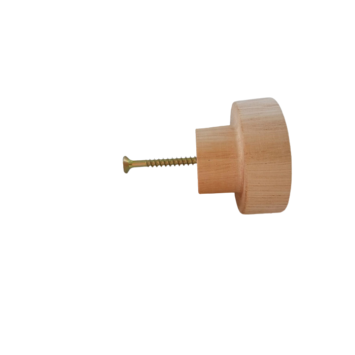 Puxador feito em madeira maciça sem pintura (cruá) com todo acabamento de lixas e acompanha parafuso de 4x35mm cabeça chata Phillips.Medidas: 4x3 cm.Madeira: Eucalipto naturalPintura: Não .Utilidade: Gavetas e portas em geral.