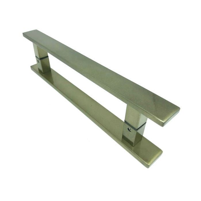 Puxador Plano duplo para porta.Descrição Técnica:Material: Aço Inox 304Medidas disponíveis: 40cm, 60cm, 80cm, 1 metro e 1,20 mt, 1,50 me e 1,80mtAcabamento: aço inox antique ( ouro velho)Medida do perfil : 40mm largura x 10mm alturaFormato dos pé: quadradoAltura dos pés: 40mmMedida dos pés:25mm*Acompanha chave allen e parafusos para fixação.*Acompanha manual de instação contendo todas as informações necessárias.*Puxador adequado para vários tipos de portas: comum de madeira, vidro temperado, esquadrias de alumínio e aço.*Resistente a luz solar e a água.*Puxador duplo, ou seja, vendidos para os dois lados da porta (PAR).