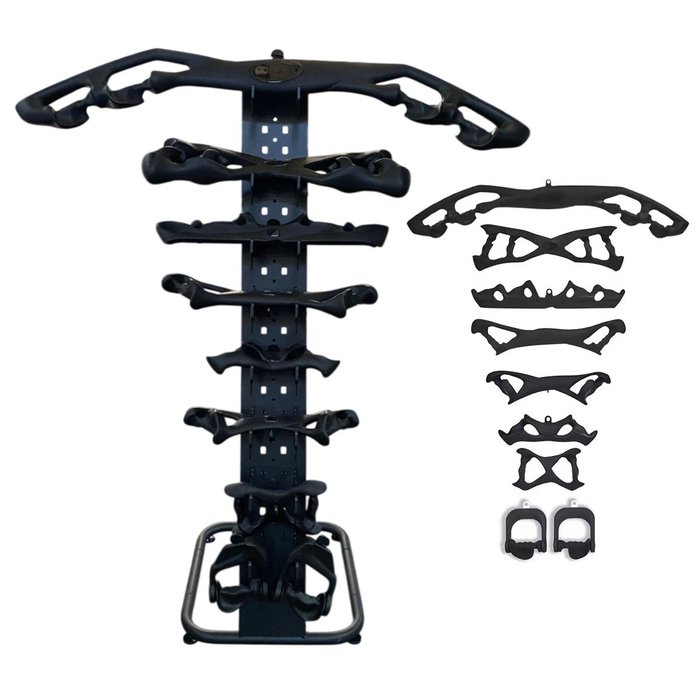 Acompanha também um suporte para que você possa guardar seus puxadores, quando não tiver usando, para garantir a organização no seu ambiente de treino.