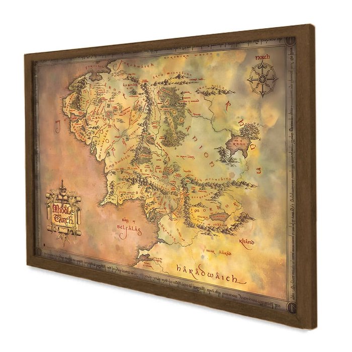 Quadro Decorativo Mapa Senhor dos Anéis em Moldura Caixa com ou sem Vidro