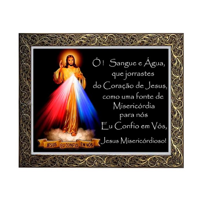 Quadro Jesus Misericordioso com Oração Moldura Luxo 55 cm x 45 cm