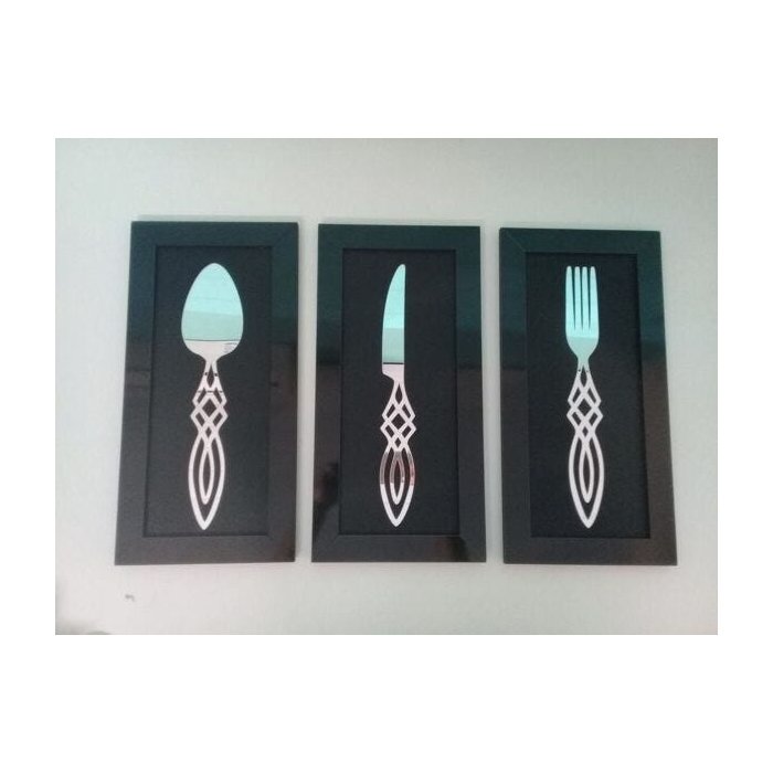 Kit 3 quadros talheres, ótima opção de presente ou decorar sua casa. Quadrinhos são feito em mdf pintado. apliques em acrílico espelhado. Tamanho : 30x60 cada quadrinho.