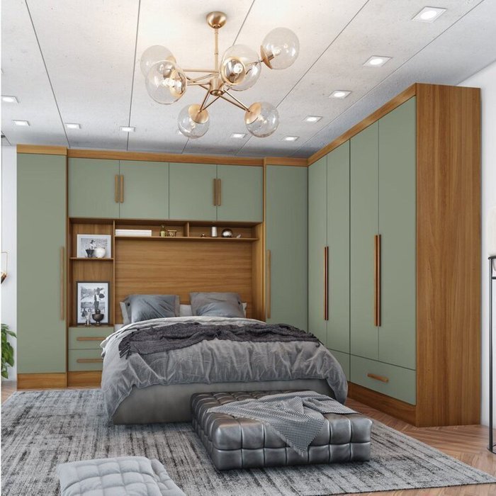 Quarto de Casal Completo 5 Peças 6 Portas 4 Gavetas com Maleiro Smart Plus Cinamomo/Verde