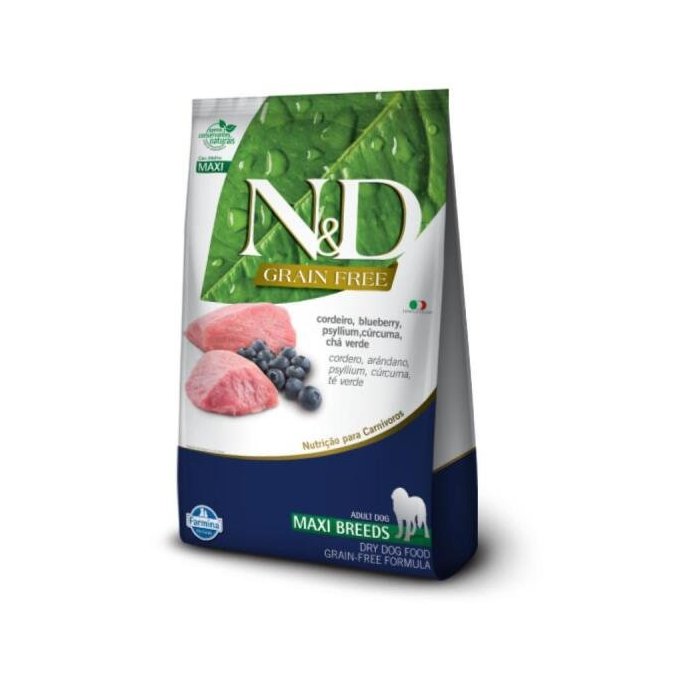 Ração N&D Grain Free Cordeiro Cão Adulto Raça Grande 10,1Kg - Alimento completo e balanceado para cães adultos de raças grandes e gigantes. - sabor: cordeiro, blueberry, psyllium, cúrcuma e chá verde. - proteína de cordeiro de alta qualidade; - ótimo equilíbrio de minerais; - enriquecido com frutas e legumes; - essências botânicas como chá verde, alfafa, aloe vera e psyllium; - livre de transgênicos. Composição básica: carne de cordeiro, farinha de carne e ossos de ovino (mín. 3%), farinha de vísceras de aves, ovo desidratado, farinha de peixe, farinha de torresmo (proteína isolada de suíno), amido de batata, amido de mandioca, óleo de peixe, óleo de frango, polpa de beterraba, casca de ervilha, alfafa desidratada, lignocelulose, semente de psyllium, levedura seca de cervejaria, cenoura desidratada, espinafre desidratado, laranja desidratada, maçã desidratada, blueberry desidratado (mín. 0,075%), extrato de romã, extrato de chá verde, extrato de aloe vera, cúrcuma em pó, beta caroteno, luteína, aditivos prebióticos (fos e mos), dl-metionina, taurina, l-carnitina, sulfato de condroitina, sulfato de glicosamina, extrato de yucca, zeolita, hidrolisado de fígado de frango e suíno, vitaminas (a, d3, e, b1, b2, b6, b12, c, biotina, niacina, ácido pantotênico, ácido fólico, cloreto de colina), cloreto de potássio, ferro aminoácido quelato, cobre aminoácido quelato, zinco aminoácido quelato, manganês aminoácido quelato, proteinato de selênio, iodato de cálcio, propionato de cálcio, concentrado de tocoferóis. Eventual substitutivo: proteína hidrolisada de peixe. Informação nutricional: Enriquecimento mínimo por kg Vitamina a 15.000ui; vitamina d3 1.500ui; vitamina e 600ui; vitamina b1 4,5mg; vitamina b2 7,5mg; vitamina b6 6mg; vitamina b12 60mcg; vitamina c 150mg; biotina 0,38mg; niacina 37,5mg; ácido pantotênico 15mg; ácido fólico 0,45mg; colina 1.700mg; ferro 40mg; cobre 13mg; zinco 145mg; manganês 49mg; selênio 0,15mg; iodo 1,6mg. Níveis de garantia Umidade (máx.) 90g/kg(9%); proteína bruta (mín.) 350g/kg(35%); extrato etéreo (mín.) 180g/kg(18%); materia fibrosa (máx.) 26g/kg(2,6%); matéria mineral (máx.) 83g/kg(8,3%); cálcio (mín.) 8.000mg/kg(0,8%); cálcio (máx.) 15g/kg(1,5%); fósforo (mín.) 7.000mg/kg(0,7%); potássio (mín.) 5.000mg/kg; ômega 6 (mín.) 25g/kg; ômega 3 (mín.) 4.000mg/kg; dha (mín.) 900mg/kg; epa (mín.) 700mg/kg; fruto-oligossacarídeos (mín.) 6.000mg/kg; mannan-oligossacarídeos (mín.) 600mg/kg; metionina (mín.) 5.000mg/kg; taurina (mín.) 1.000mg/kg; l-carnitina (mín.) 250mg/kg; sulfato de condroitina (mín.) 900mg/kg; sulfato de glicosamina (mín.) 1.200mg/kg; e. Metabolizável (mín.) 3.909kcal/kg.