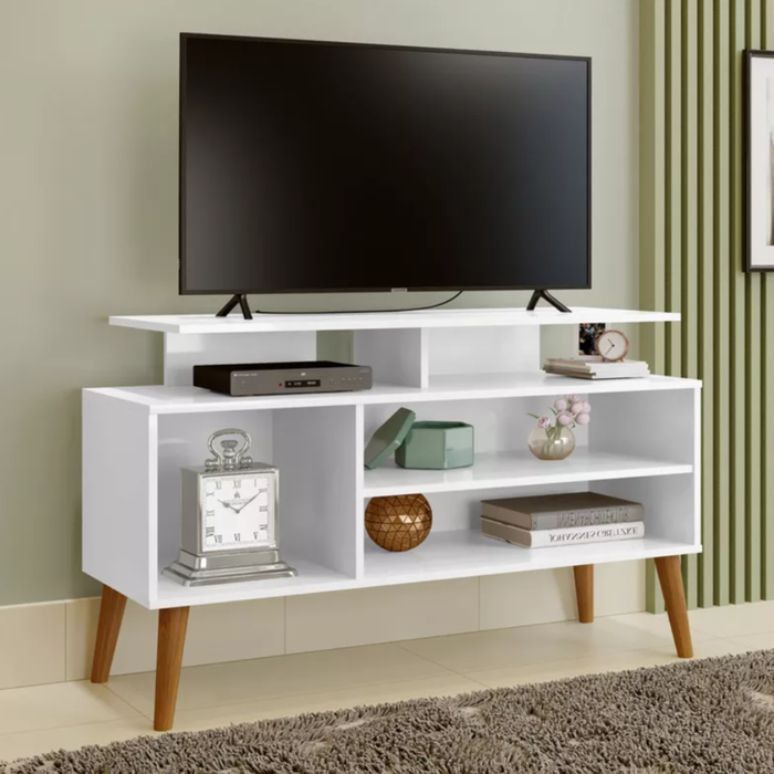 Rack Lyon Pés em Madeira Prateleiras Moderno para Tv Ate 42 Polegadas:branco Branco