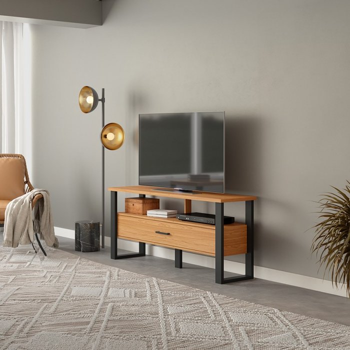Rack para Tv até 55 Polegadas 1 Gaveta Industrial Freijó/preto - Dalla Costa
