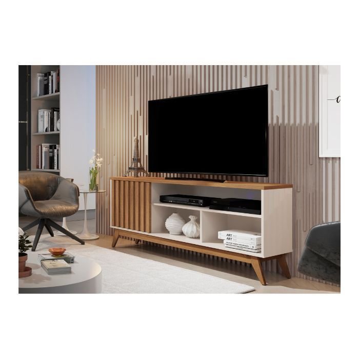 Com porta ripada e pés em madeira, ele traz elegância e praticidade para TVs de até 50 polegadas, deixando seu ambiente mais organizado e aconchegante.
