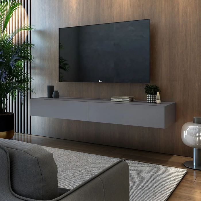 Rack Suspenso Eros 140cm para Tv até 55'' Mdf 2 Gavetas Mdf Alto Padrão Sala de Estar:cinza