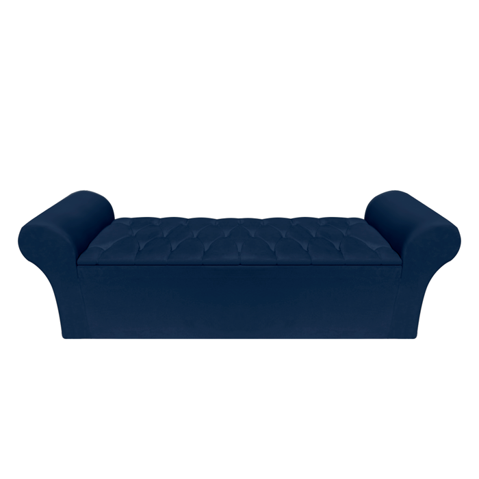 Recamier Baú Calçadeira Quarto Casal 138cm Barcelona:suede Azul Marinho