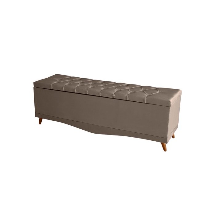 Recamier Calçadeira Baú Helena King 195 Cm Botão Encapados Pés Palito Suede Capuccino Eli Móveis