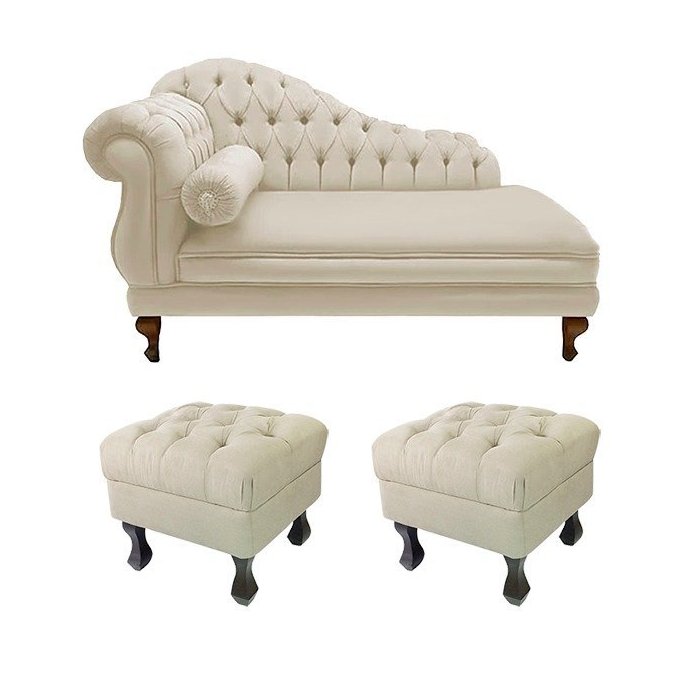 Recamier Divã Namoradeira Larissa 150cm + 2 Puffs Retrô Suede Bege - LM DECOR
