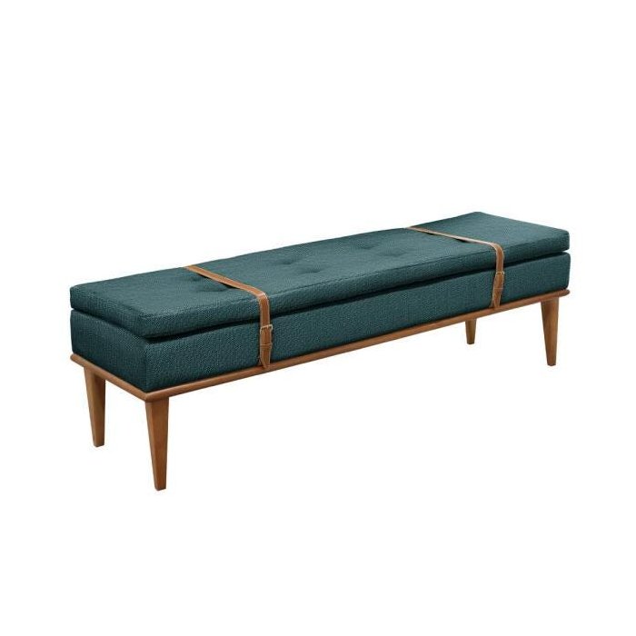 Recamier Puff Londres Luxo Madeira Maciça Linho Azul Azul