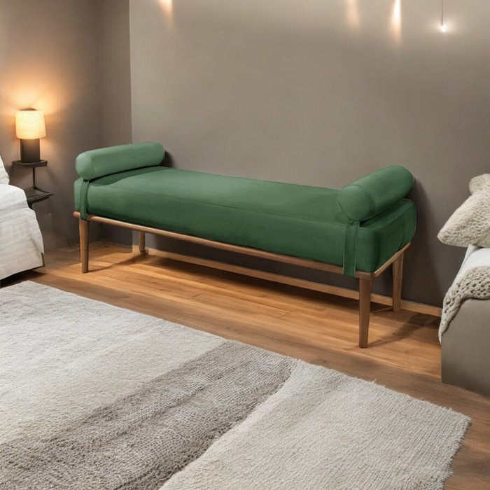 Recamier Puff Luxo Madeira Maciça Berlim Veludo Verde