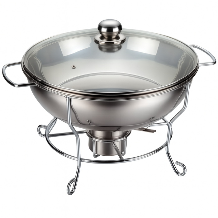Rechaud Rm Redondo em Aço Inox Banho Maria com Suporte para Tampa e Fogareiro 6 L Buffet