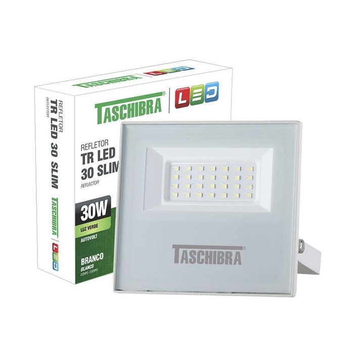 Refletor Taschibra Led TR Slim 30W Luz Verde Branco Bivolt O Refletor Taschibra possui 30 watts de potência e é ideal para iluminação em geral, especialmente em áreas externas, pontos comerciais, industriais, placas e outdoors, quadras esportivas, jardins, entre outros. Além disso, seu ângulo de abertura é de 120 e oferece um belo facho de luz brilhante. Conta ainda, com longa durabilidade e baixo consumo de energia, economize até 85% de energia.