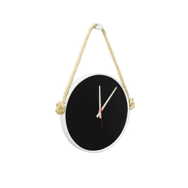 Ver imagem 1 de Relógio Adnet Branco Alça Corda Sisal Natural Mostrador Preto 30 cm