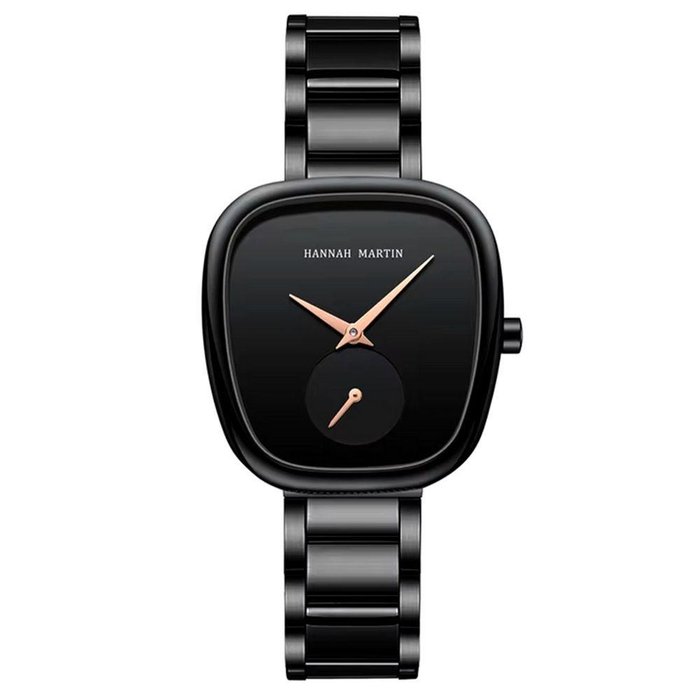 Relógio de Pulso de Quartzo Oval Estilo Minimalista Feminino em Aço Inoxidavel Preto Preto