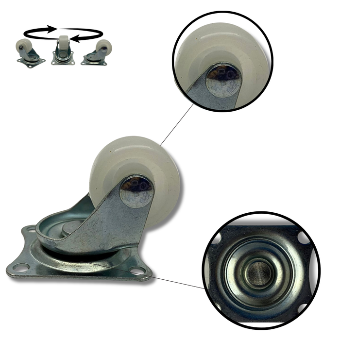 Rodízio Rodinha Giratório Placa Base Aço Roda Nylon Diâmetro 30mm 1,2" Altura 40mm