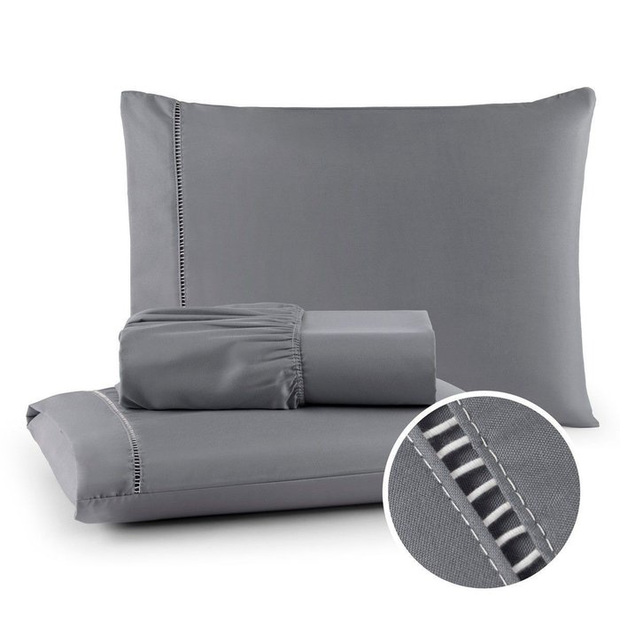 Roupa de Cama Lençol Casal 400 Fios Percal 3 Peças Ponto Palito Anti-pilling com Toque 100% Macio Pr Cinza