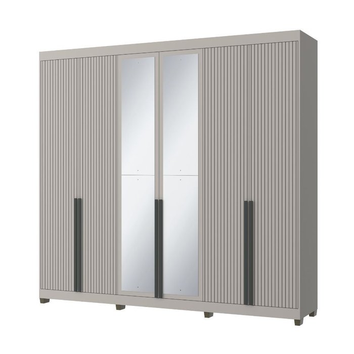 Roupeiro Newton - 6 Portas 4 Gavetas 10 Prateleiras com Espelho - Casamia Cinza