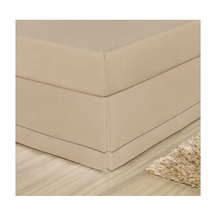 Saia Cama Box Baú Solteiro Ponto Palito Percal Algodão - Caqui