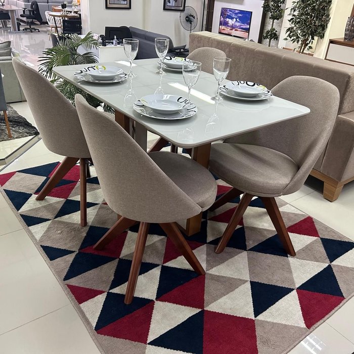 Sala de Jantar Mesa Sparta com 4 Cadeiras Dilly Giratórias