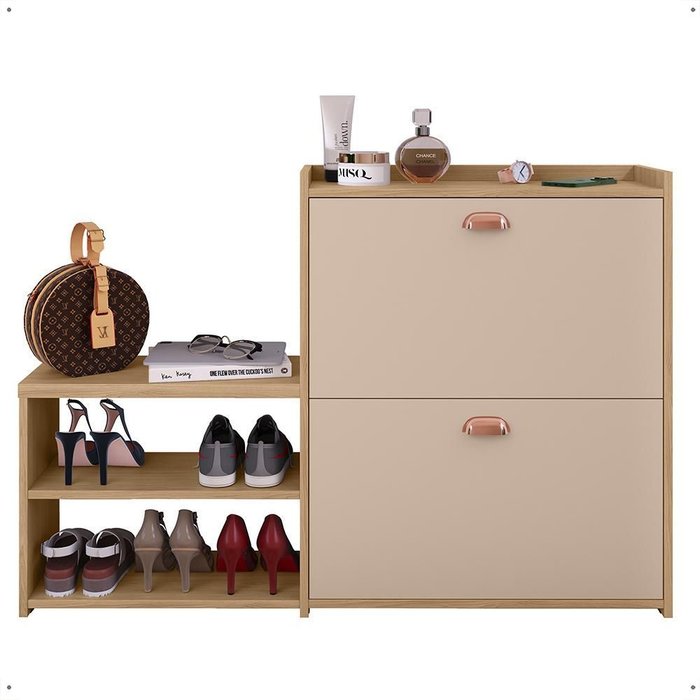 Sapateira Hall Entrada 2 Gaveta Basculante Puxador Concha Banco Prateleira Porta Sapatos Sala Quarto Hanover/Fendi