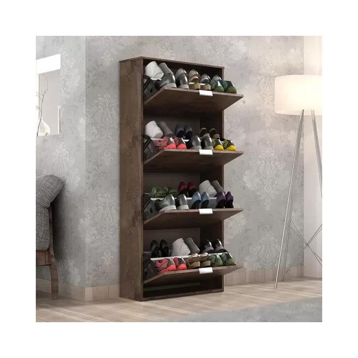 Com 4 portas articuláveis, puxadores e design modernos faz da Multiuso Sapateira Safira um móvel sofisticado e próprio para pessoas exigentes com organização. Seus sapatos, sapatilhas, melissas, tênis, chinelos e sandálias ficarão arrumados em um móvel compacto que se adequa ao estilo da sua casa. Não indicamos para calcados maiores que tamanho 41 Brasil. Além disso, o produto possui uma fácil montagem.