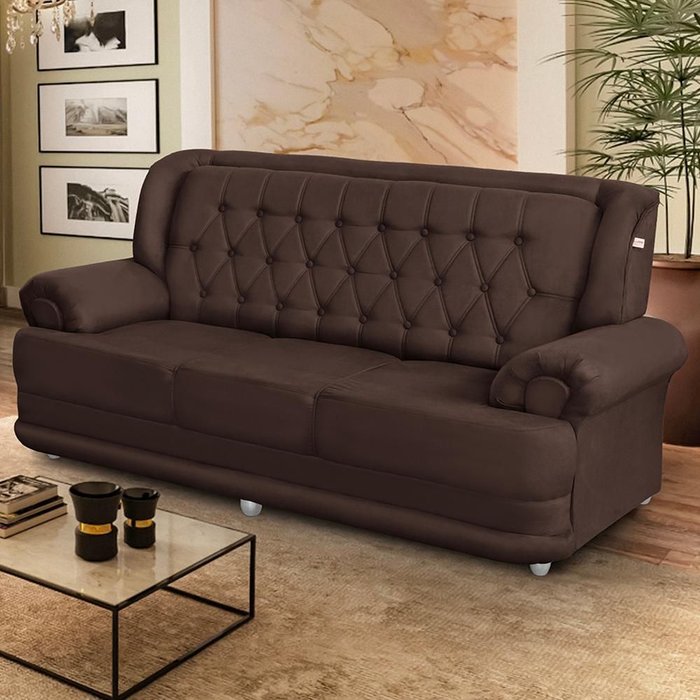 Sofá 2,00m 3 Lugares Suede Filadélfia Marrom Café