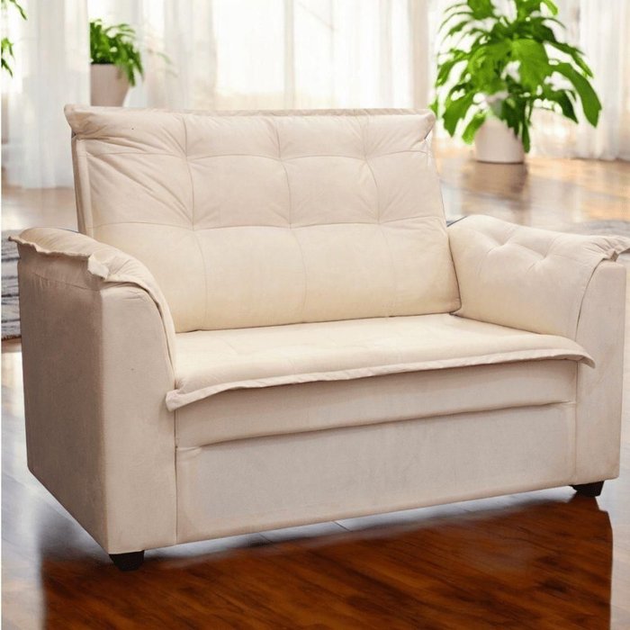 Sofá 2 Lugares Namoradeira Marrocos 1,40m Sala de Tv Estar Recepção Suede Bege Mabe Magazine