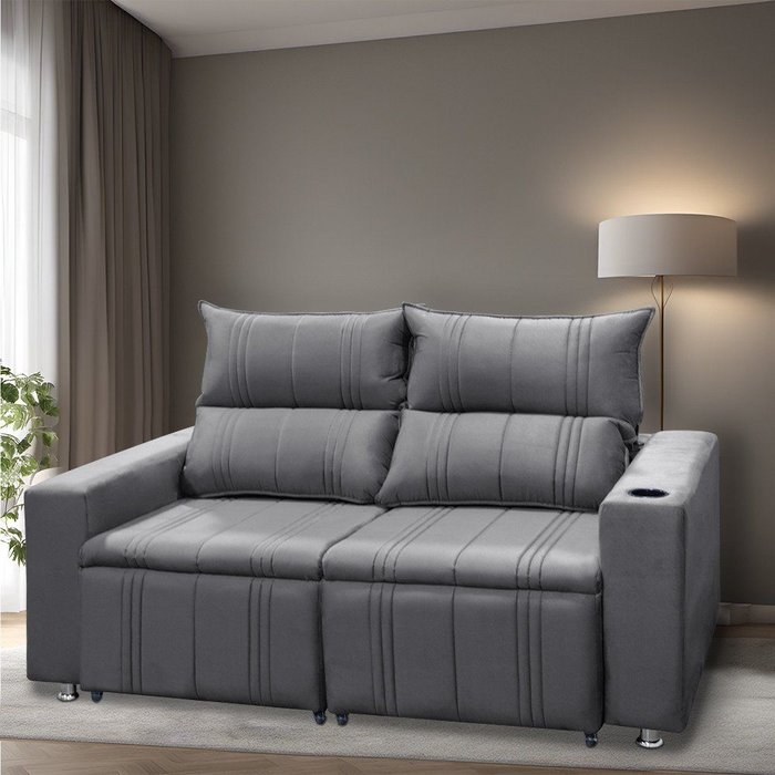 Sofá 2 Lugares Retrátil e Reclinável Madri 1,50m C/molas - Veludo Chumbo