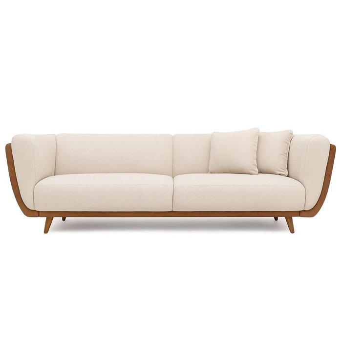 Sofá 3 Lugares 240cm Salezi com Duas Almofadas Courino Caramelo | Bouclé Suave Off White - Sallar Ho