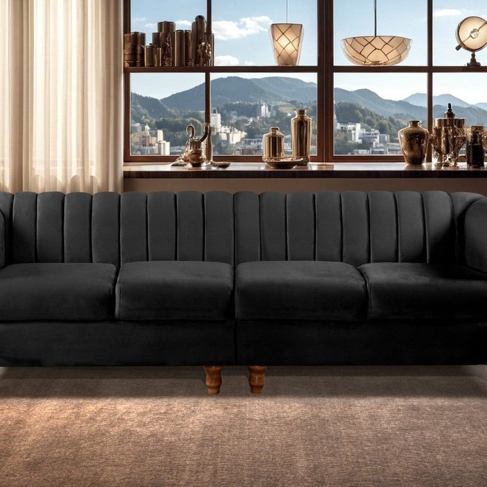 Sofá 4 Lugares Decoração Retrô Clássico Realeza Chesterfield Preto