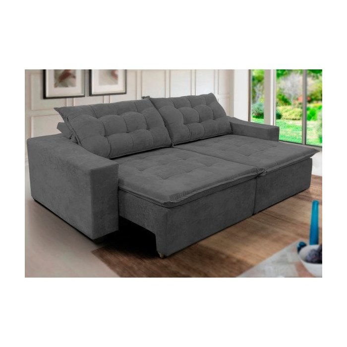Sofá Amazonas 3,00M Retrátil com Molas Cinza