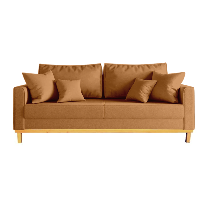 Sofá Beny 3 Lugares 180cm Base de Madeira Linho: Terracota