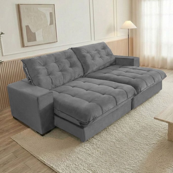 Sofá Califórnia Retrátil e Reclinável 4 Lugares 2,30m com Molas Ensacadas e Pillow Cinza