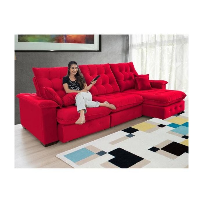 Sofá Coliseu 3.10m Retrátil e Reclinável Super Pillow - Vermelho Vermelho