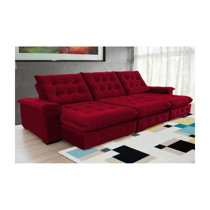 Sofá Coliseu 370cm Retrátil e Reclinável Super Pillow Vinho