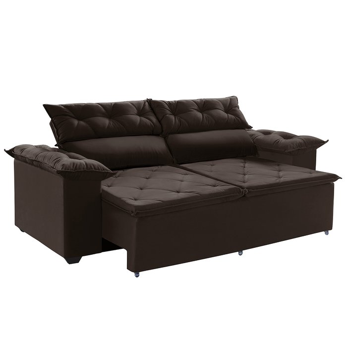 Ele possui encosto reclinável em cinco posições, proporcionando-lhe mais conforto na hora do descanso. E não para por aí: seu assento retrátil conta com espuma D28 e molas espirais, transformando seu sofá em uma verdadeira cama para assistir seu filme preferido.