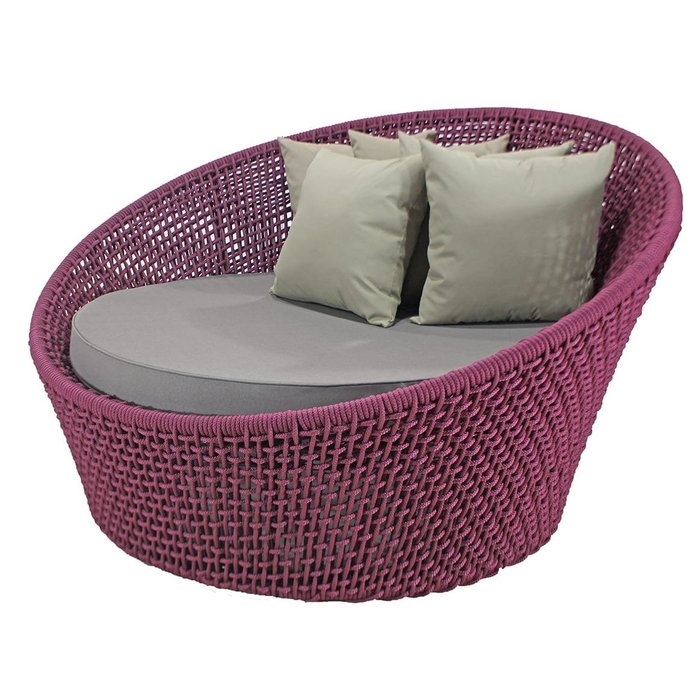 Sofá Concha Redonda em Corda Náutica para Área Externa Jardim e Sacada Corda náutica roxa, almofadas areia
