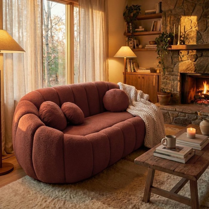 Sofá Curvo Orgânico Confortável Concha Bouclê Terracota - Vimont Moveis